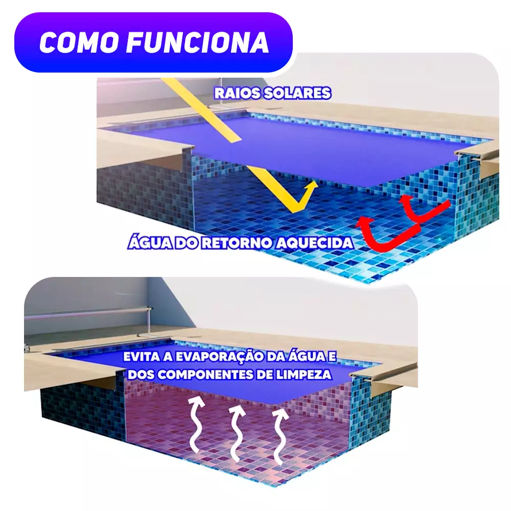É um produto à base de álcoois graxos biodegradáveis que, ao ser adicionado à água da piscina, forma uma camada molecular ultrafina e invisível na superfície. Essa camada atua como uma barreira térmica, impedindo que o calor da água se dissipe para o ambiente e que a água evapore rapidamente. O resultado é uma piscina mais quente por mais tempo, com menor gasto de energia e água.